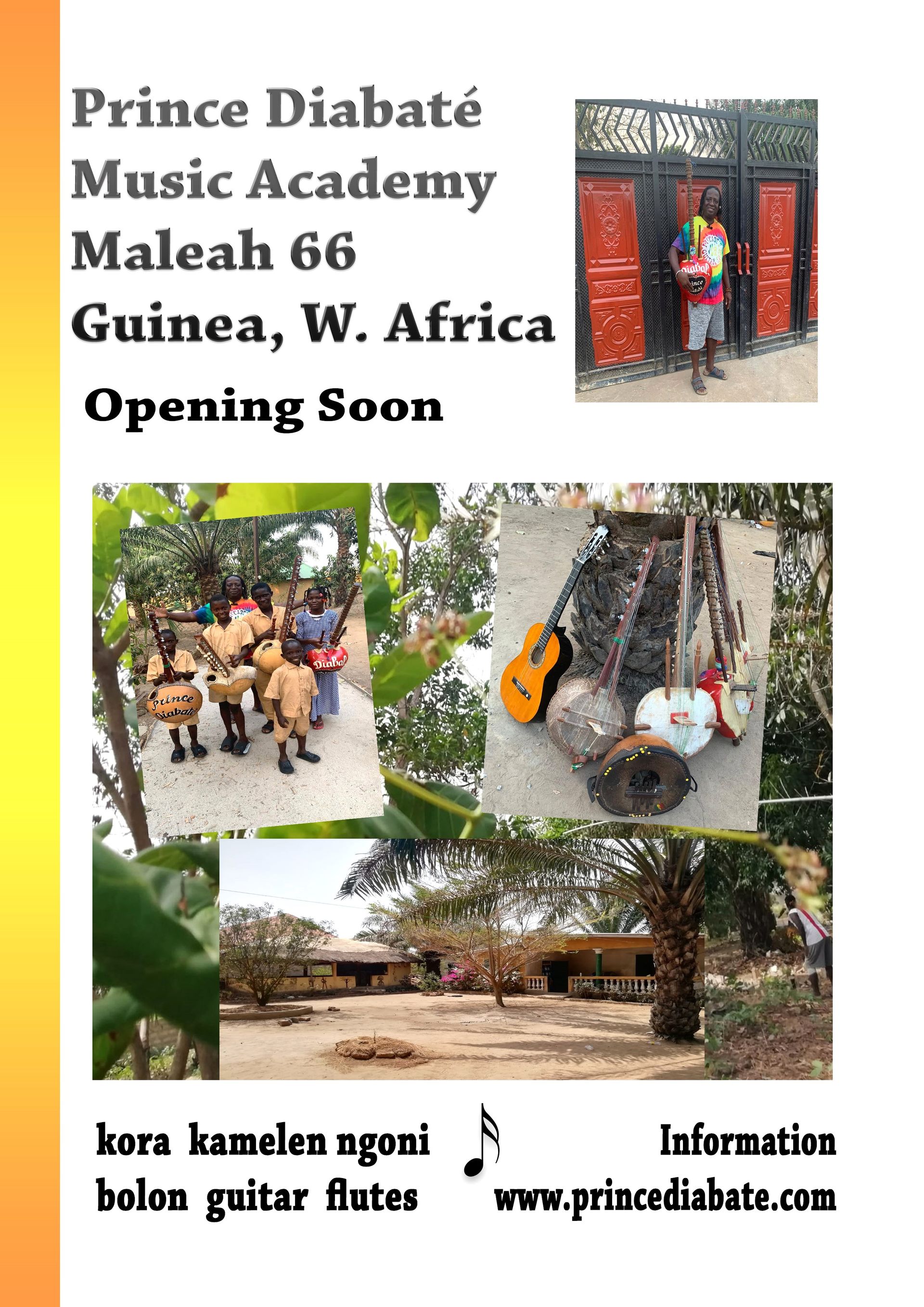 At the end of 2013 the Prince Diabate Music Academy was officially launched in Guinea. This new academy, the first privately-funded establishment in Guinea, is the result of Prince Diabate's desire to create an international music school specializing in stringed instruments and traditional flute. Construction is still underway and thanks to the encouragement of government ministers in Guinea and the generosity of private donors an official opening is scheduled for 2026.