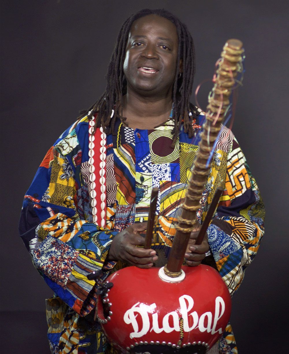Considered to be one of the leading kora players of his generation, Prince Diabate brings not only total mastery over his ancestral tradition, but a commitment to renew it through fresh ideas and exchanges with musicians from many cultures. His years in the USA have produced collaborations with artists and groups as diverse as The New Mexico Symphony Orchestra, Adam del Monte (Flamenco), Paul Livingstone (sitar) and Grammy winners Ozomatli (Hip-Hop/Latin rock.) The musically adventurous griot has incorporated reggae, rap and blues into his work and lately has adapted the music of the Wassolou people to his repertoire, which he plays self-taught on the kamelen n'goni. The result is entirely his own creation: a fresh, powerful brand of twenty-first century Manden music, which remains strongly rooted in traditional codes and references. Currently based in France, he has produced three studio albums with a fourth, entitled MY MUSIC, released in October, 2022.